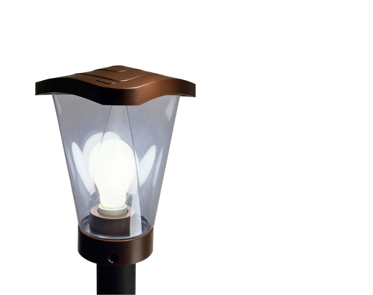 LAMBO is an outdoor post-top luminaire with a thermoplastic body and a burnished diffuser, designed to offer reliability, durability and versatility in a wide range of outdoor lighting applications. It features a ceramic E27 lamp holder and a universal base for 60 mm diameter posts, ensuring practical and secure installation. Designed for outdoor use, LAMBO guarantees an IP65 protection rating against dust and water jets and an IK07 impact resistance rating, features that confirm its robustness. The luminaire is Class II, operates on a 220–240V supply and a 50–60Hz frequency. Bulb not included. LAMBO is available in white, moss, black, graphite and Corten. The electrical components used inside each fixture in the LAMBO series are tested and certified. Rigorously designed to comply with EU directives and in accordance with the criteria of the EN 60598-1 CE standard and subsequent updates, LAMBO is manufactured in accordance with the latest sustainability standards. 5-year warranty.