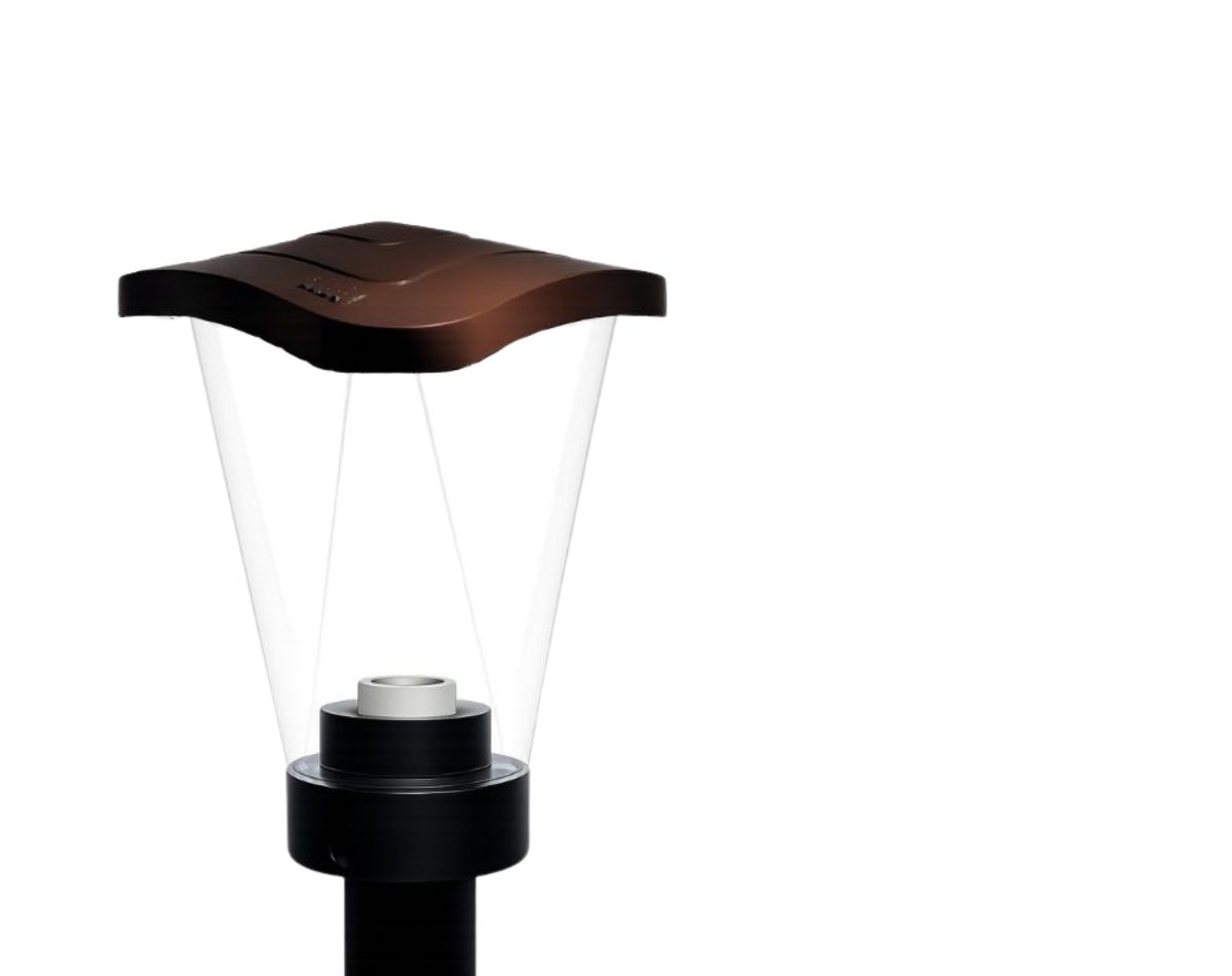 LAMBO is an outdoor post-top luminaire with a thermoplastic body and a transparent diffuser, designed to offer reliability, durability and versatility in a wide range of outdoor lighting applications. It features a ceramic E27 lamp holder and a universal base for 60 mm diameter posts, ensuring practical and secure installation. Designed for outdoor use, LAMBO guarantees an IP65 protection rating against dust and water jets and an IK07 impact resistance rating, features that confirm its robustness. The luminaire is Class II, operates on a 220–240V supply and a 50–60Hz frequency. Bulb not included. LAMBO is available in white, moss, black, graphite and Corten. The electrical components used inside each fixture in the LAMBO series are tested and certified. Rigorously designed to comply with EU directives and in accordance with the criteria of the EN 60598-1 CE standard and subsequent updates, LAMBO is manufactured in accordance with the latest sustainability standards. 5-year warranty.