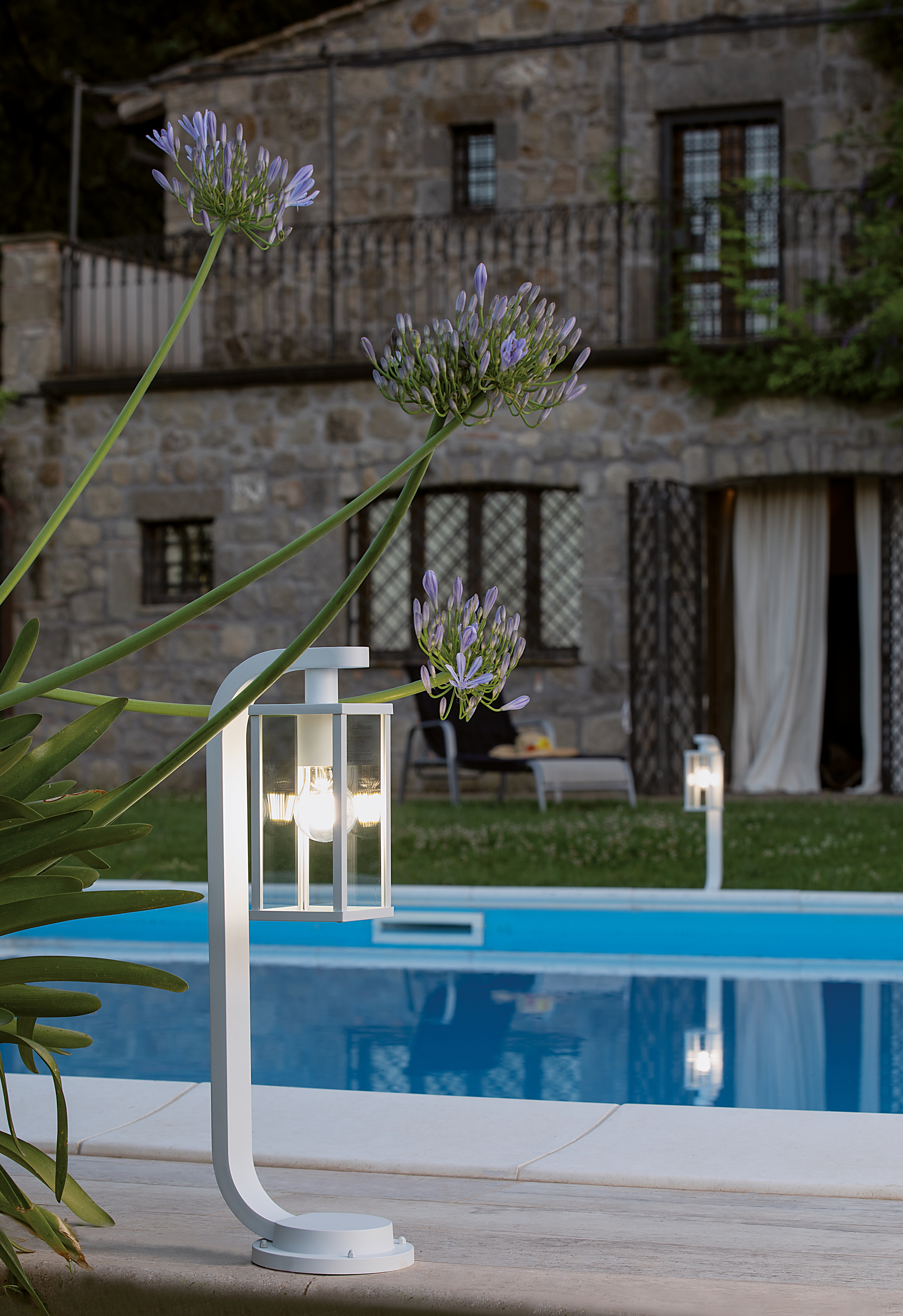 La serie AUREA ha la struttura in alluminio pressofuso di alta qualità, i diffusori sono in vetro trasparente. Il portalampada è in ceramica di tipo E27. L’apparecchio è completo di contro-base per il fissaggio a pavimento e anche il palo è in pressofusione di alluminio.